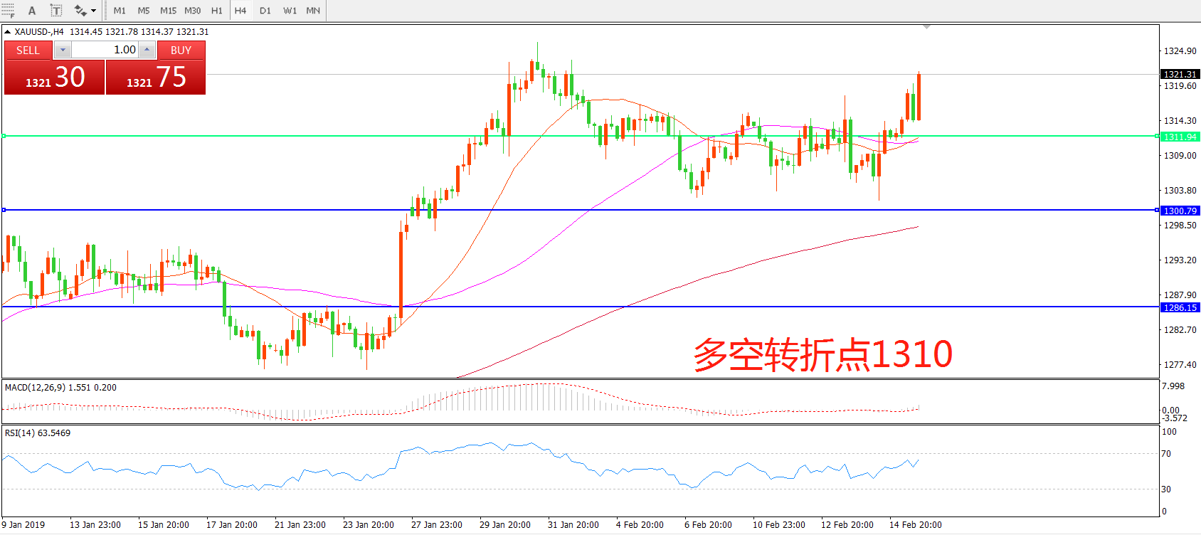 交易策略:在1310.00之上看涨,目标1325.00  1345.00