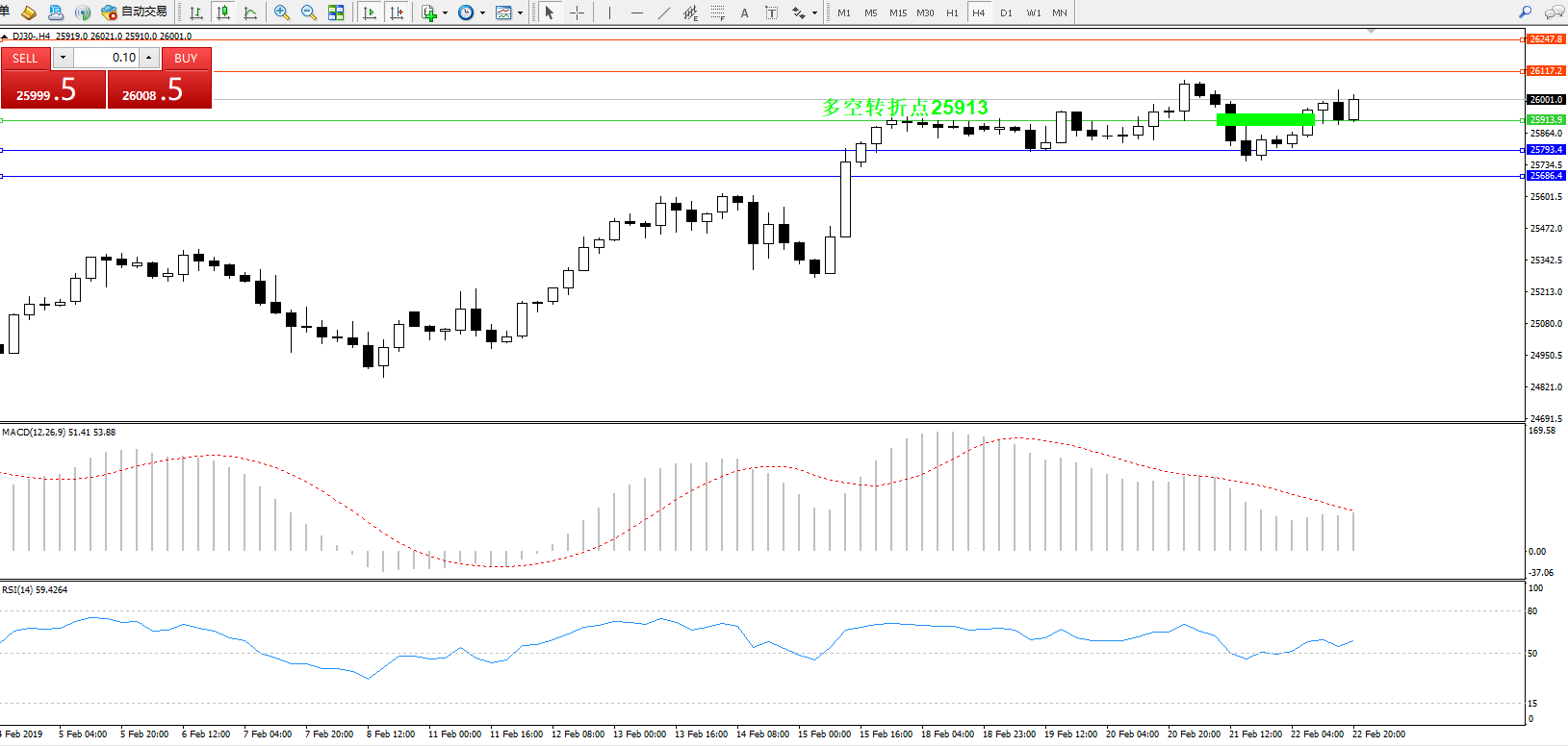 交易策略:25913上方看涨,目标26117、26247