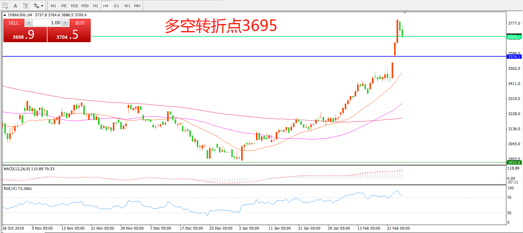 多空转折点:3695.00