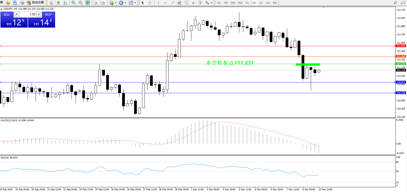 交易策略:111.231下方看跌,目标110.911、110.726