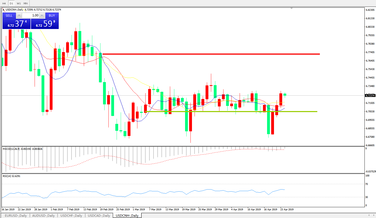 美元兑人民币USDCNH    日线图: