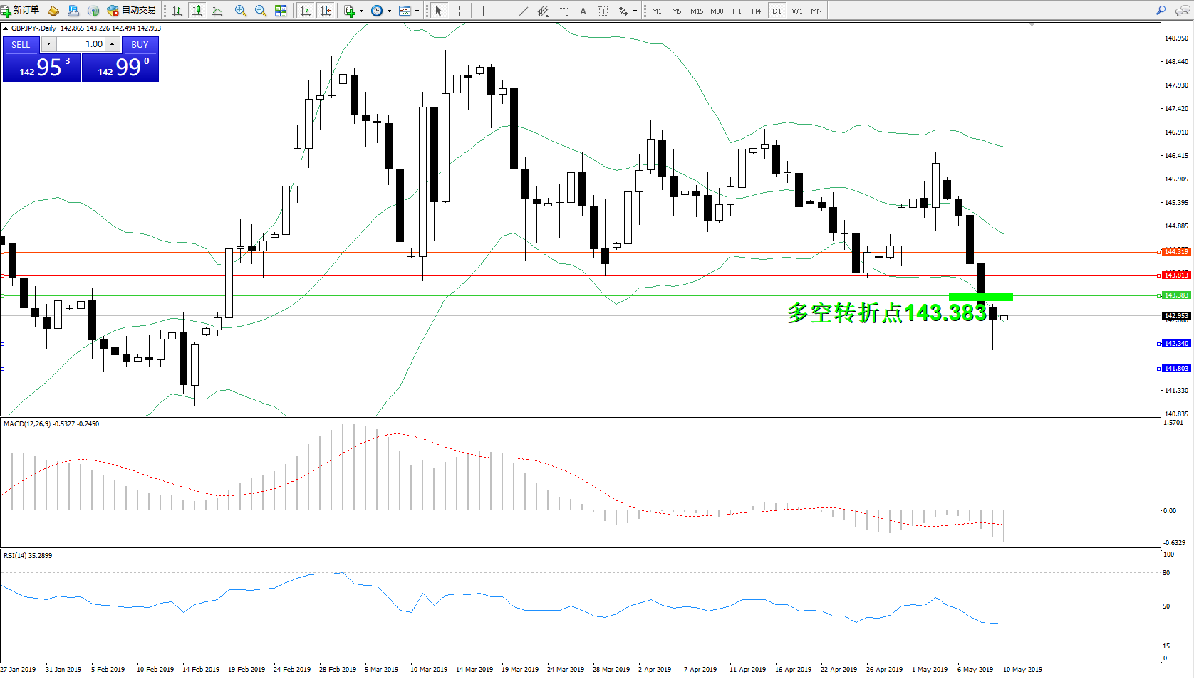 交易策略:143.383下方看跌,目标142.340、141.803