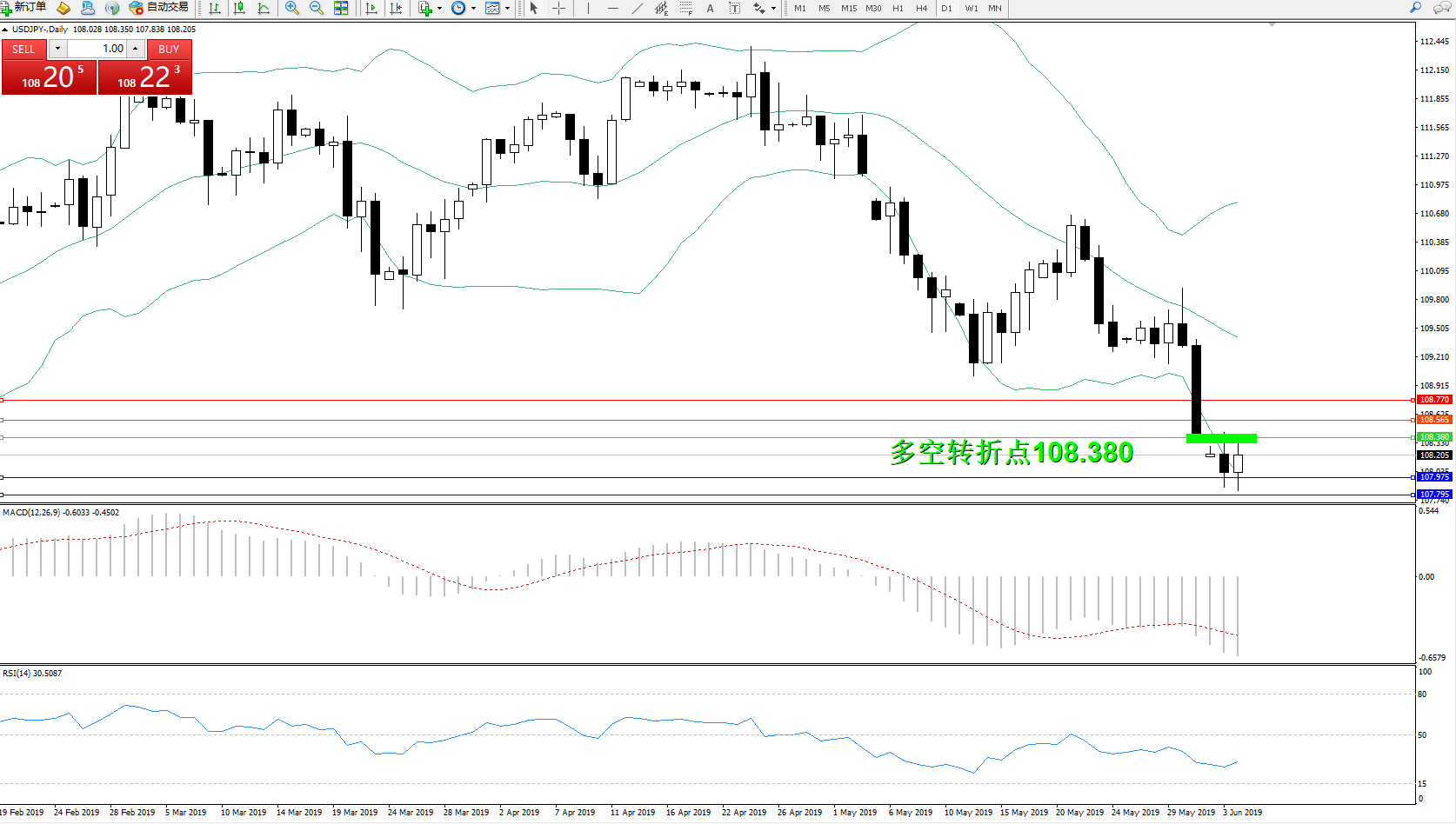交易策略:108.380下方看跌,目标107.975107.795