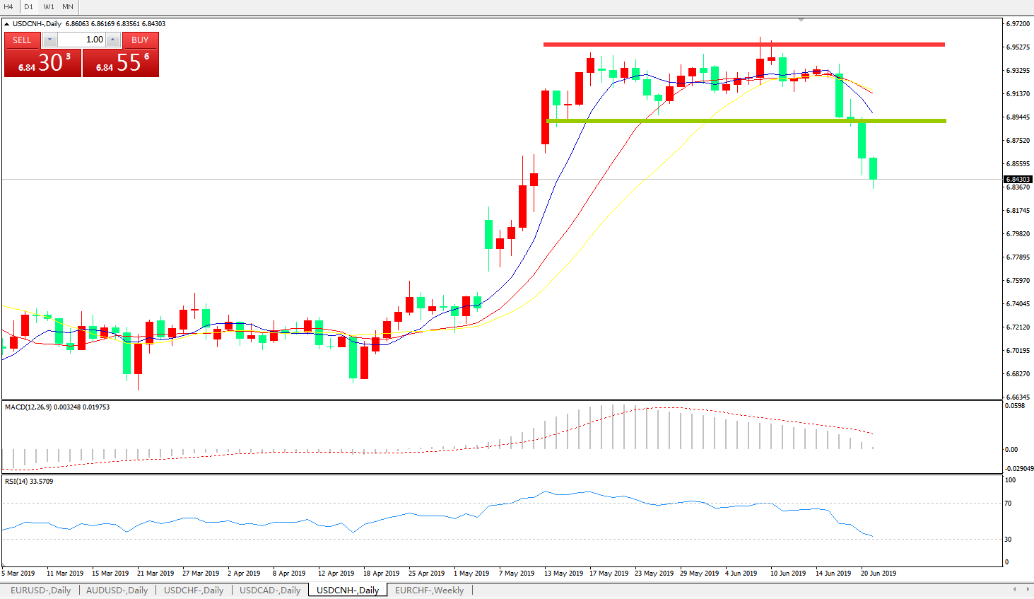 交易策略6.8880之下,看跌,目标价位为6.8100,然后为6.7600
