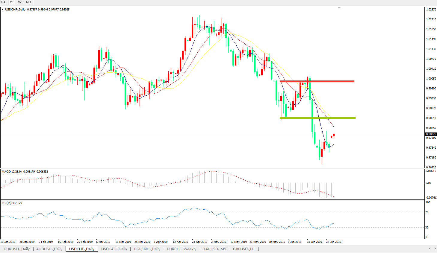 美元兑瑞郎USDCHF 日线图: