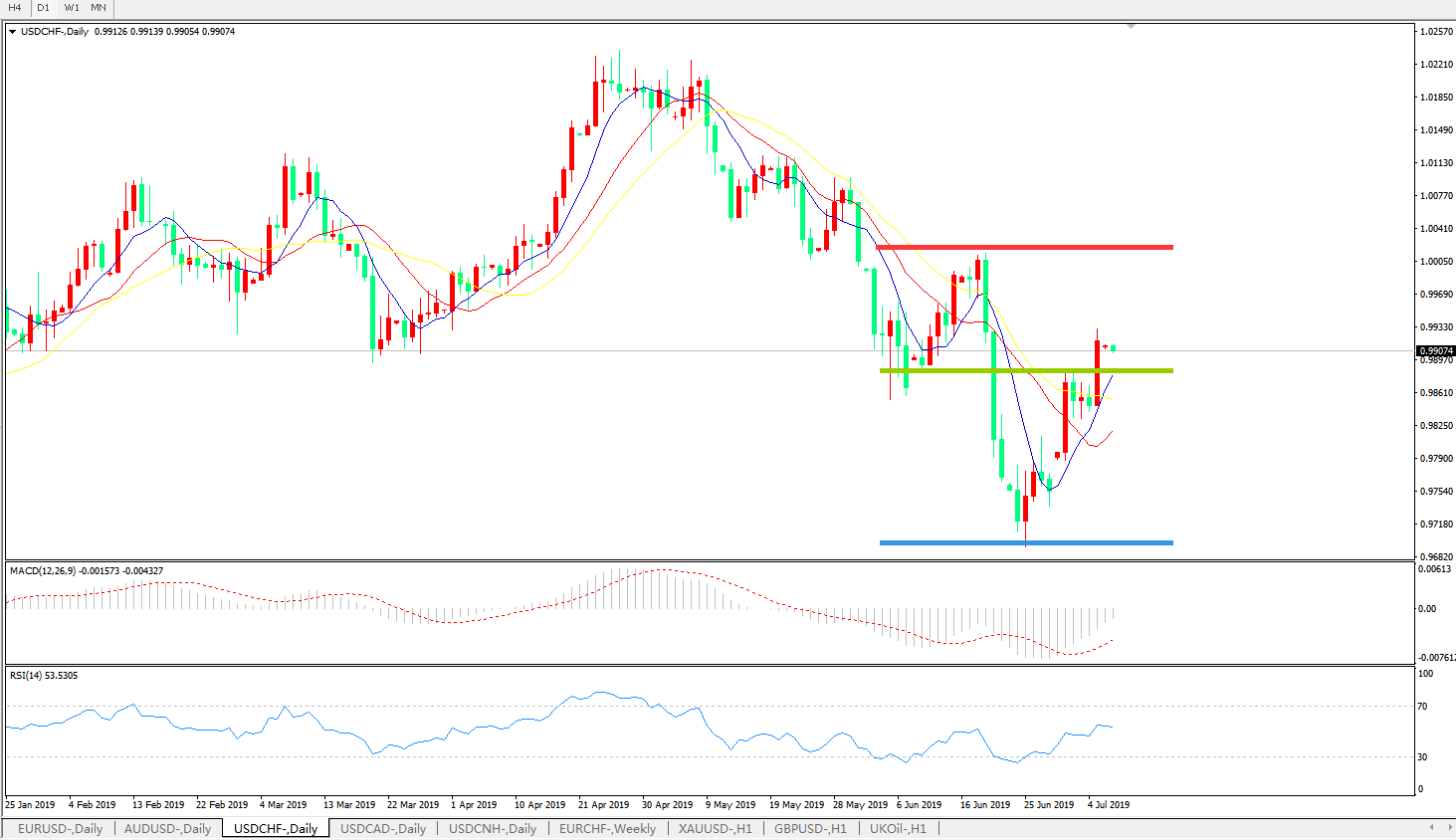 支撑位:0.9700、0.9650