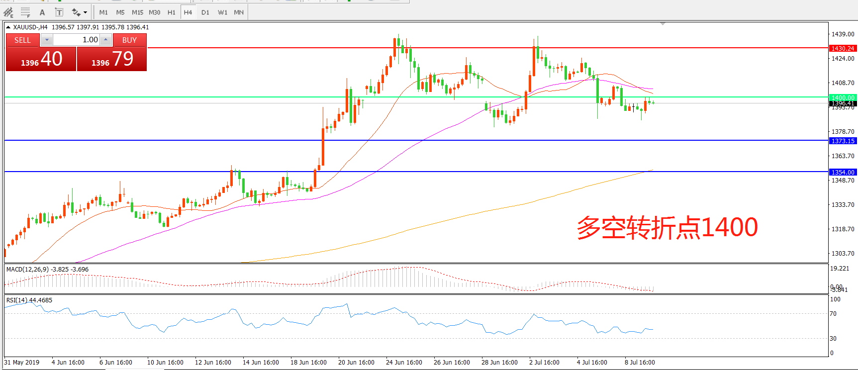 备选策略:在1400.00之下看跌,目标1373.00     1354.00