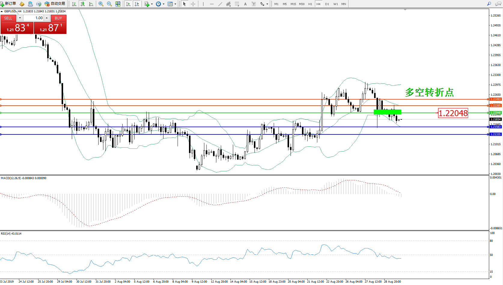 交易策略:1.22048下方看跌,目标1.215831.21335