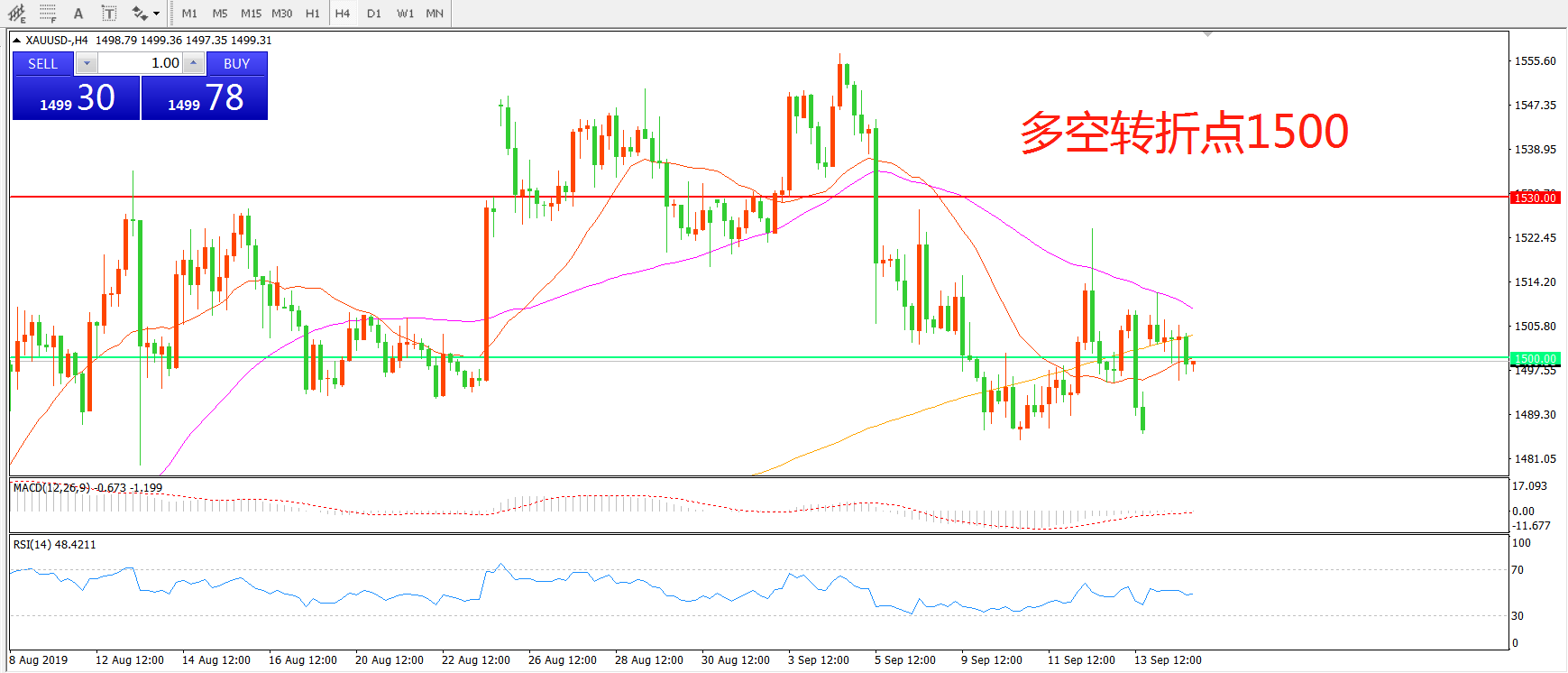 多空转折点:1500.00