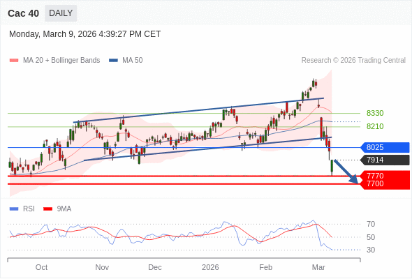 在 8025 之下,看跌,目标价位为 7770 ,然后为 7700 。