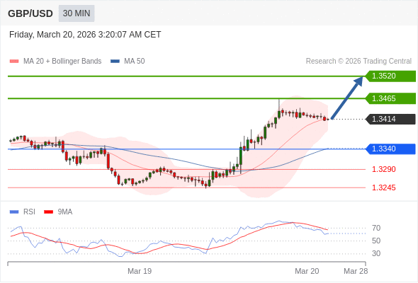 在 1.3340 之上,看涨,目标价位为 1.3465 ,然后为 1.3520 。