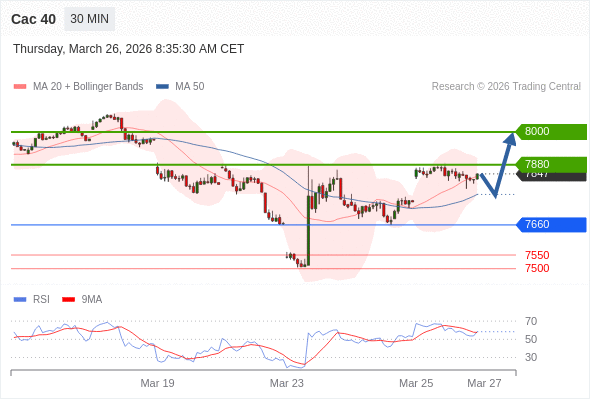 Cac 40 当日内: 谨慎操作。