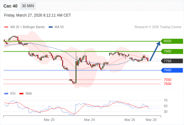 Cac 40 当日内: 期待7880。