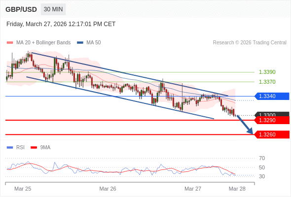 在 1.3340 之下,看跌,目标价位为 1.3290 ,然后为 1.3260 。