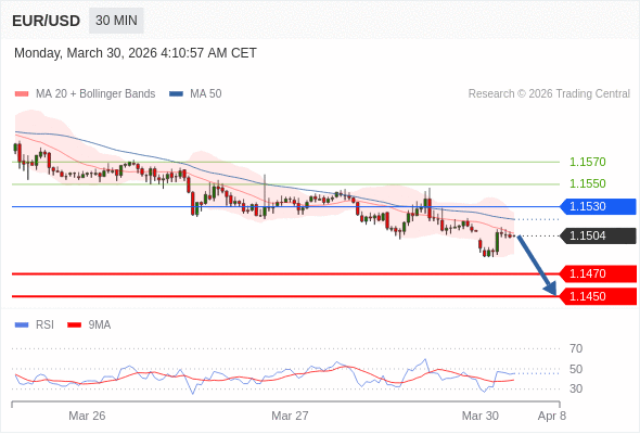 在 1.1530 之下,看跌,目标价位为 1.1470 ,然后为 1.1450 。