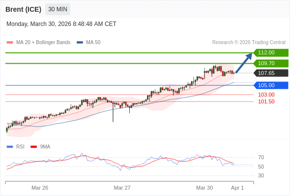 交易策略: 在 105.00 之上,看涨,目标价位为 109.70 ,然后为 112.00 。