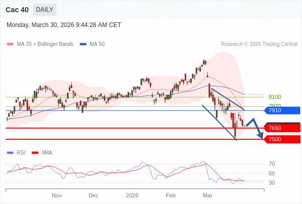 Cac 40 短线: 没有明显变化趋势。