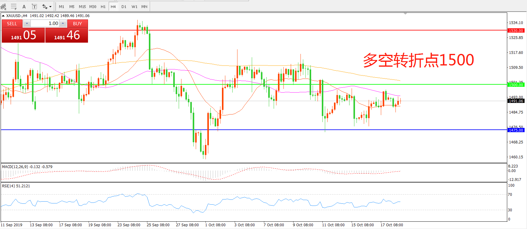 多空转折点:1500.00