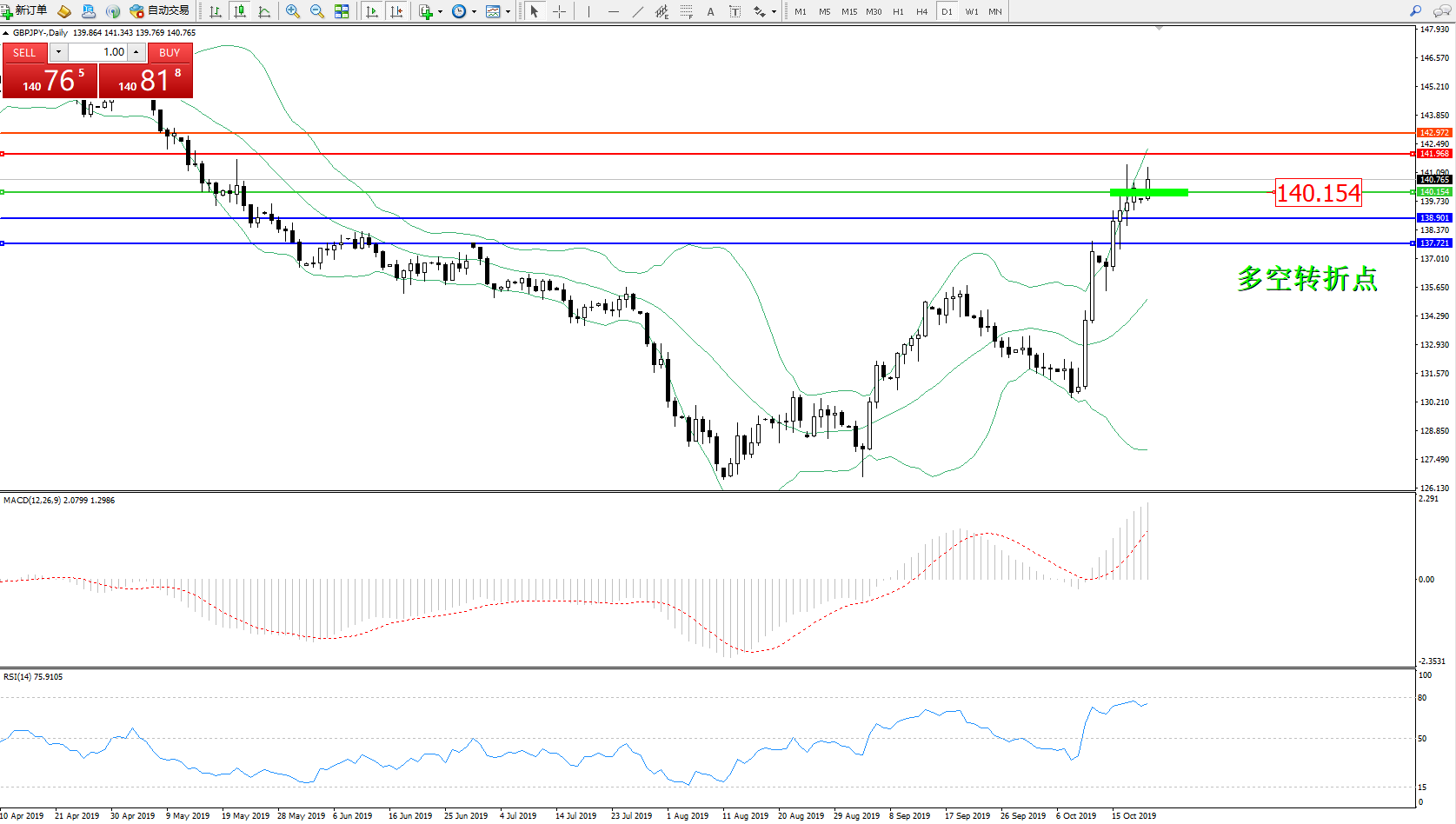 交易策略:140.154上方看涨,目标141.968142.972