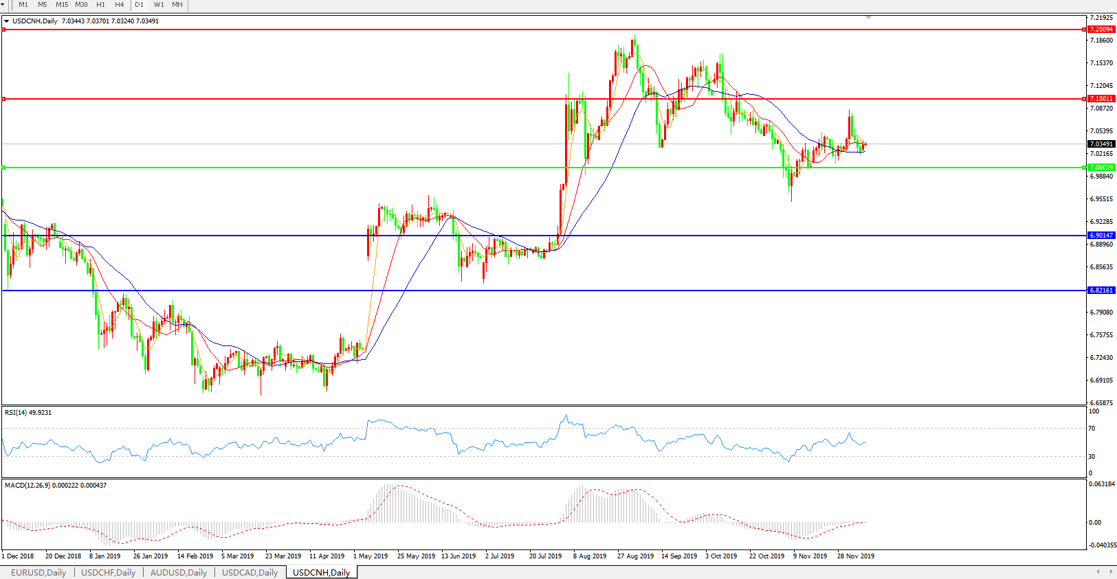 交易策略: 在7.0000之上,看涨,目标价位为7.1000,然后为7.2000。