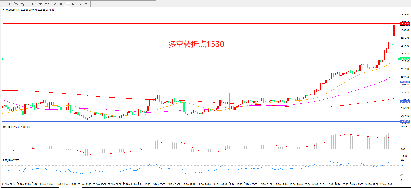 多空转折点:1530.00