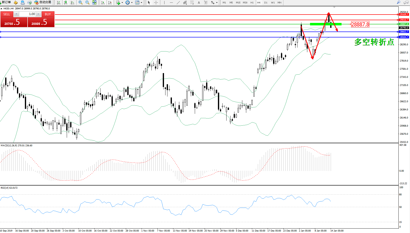 香港恒生指数114日(周二)收盘下跌69.80点,跌幅0.24%,报28885.14点;受惠美股造好,恒指早上高开194点,直冲上29000关口,最高29149,沽盘再度涌出,并逐步收窄升幅至倒跌,再失守29000关口。恒指整体表现较为强势,而此前美股的疲软并未对港股造成负面的冲击。在市场避险情势降温、美伊冲突暂缓的背景下,加上市场对中美贸易签署首阶段的贸易协议的预期,均对股市形成了积极的推动作用。投资者风险投资情绪积极,港股上行空间仍存。