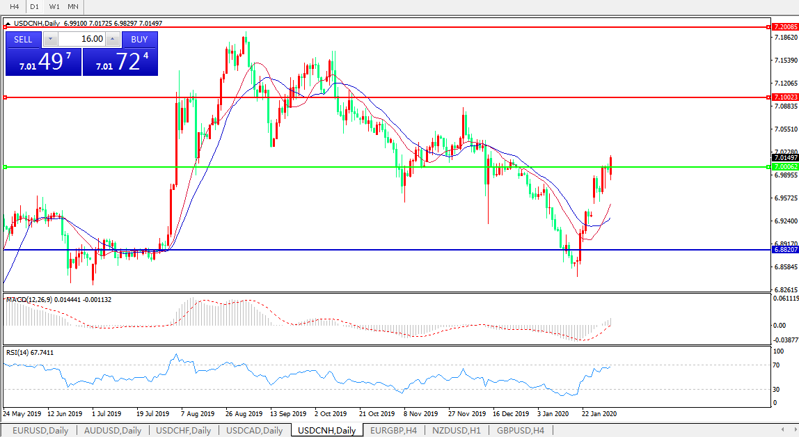 交易策略: 在7.0000之上,看涨,目标价位为7.1000,然后为7.2000。