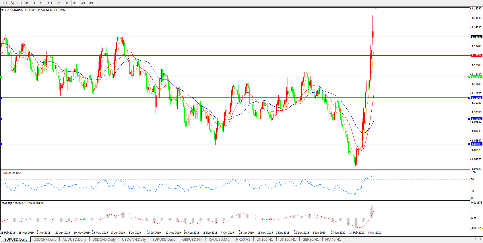 交易策略:1.1200上方看涨,目标1.1300、1.1400、1.1500