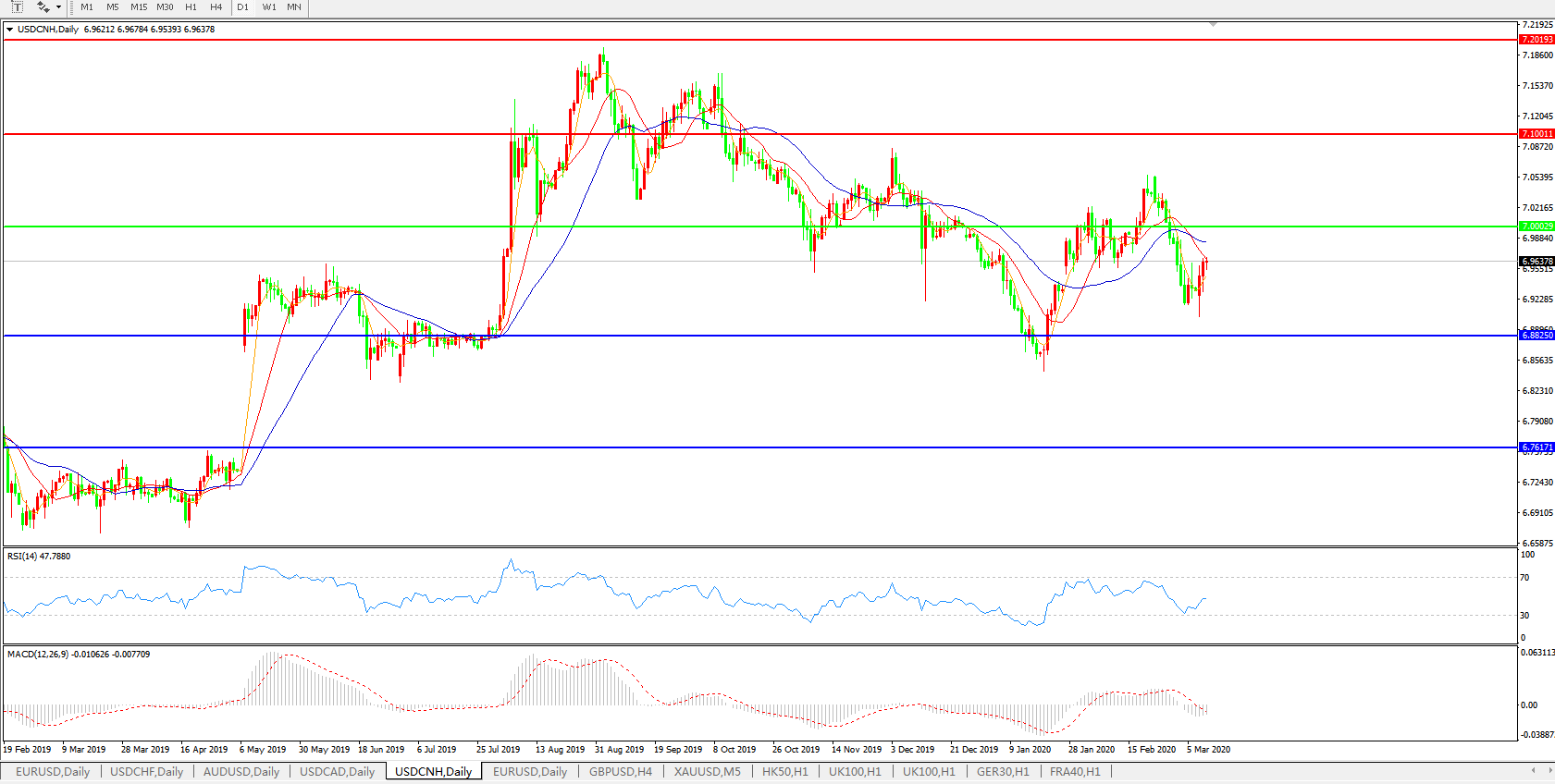 美元兑人民币USDCNH    日线图: