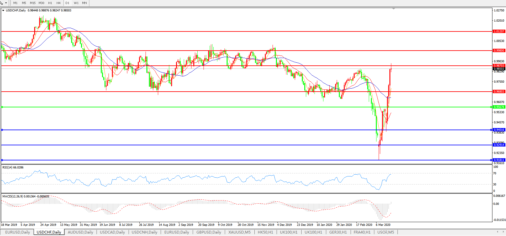 美元兑瑞郎USDCHF 日线图: