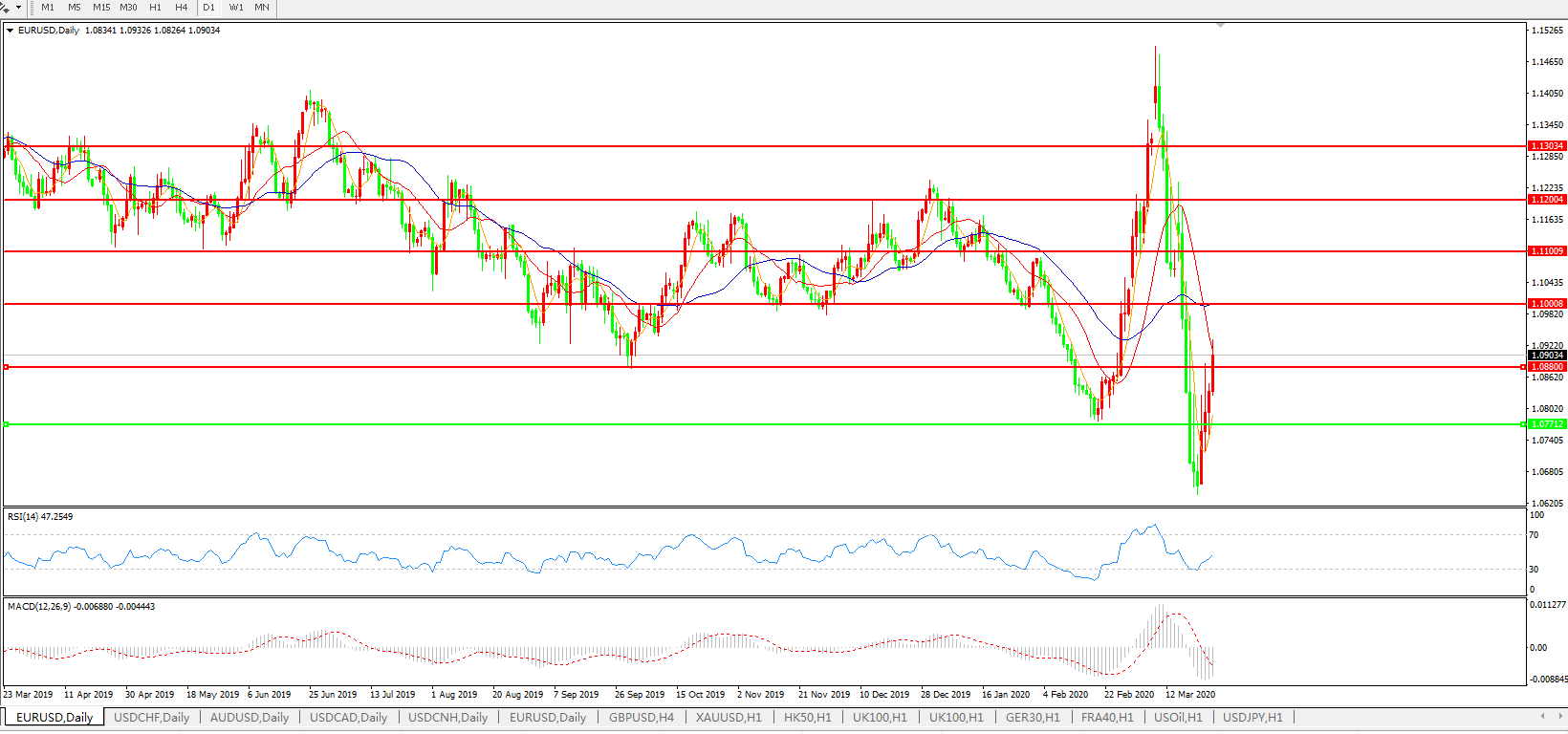 欧元兑美元EURUSD 日线图: