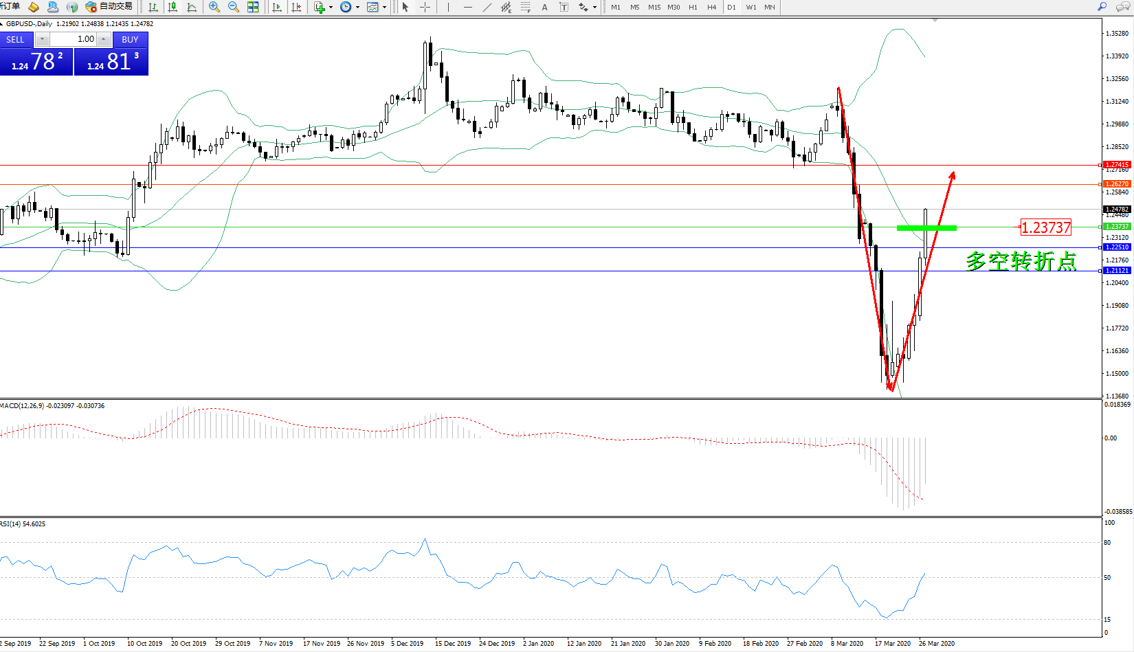 交易策略:1.23737上方看涨,目标1.262701.27415