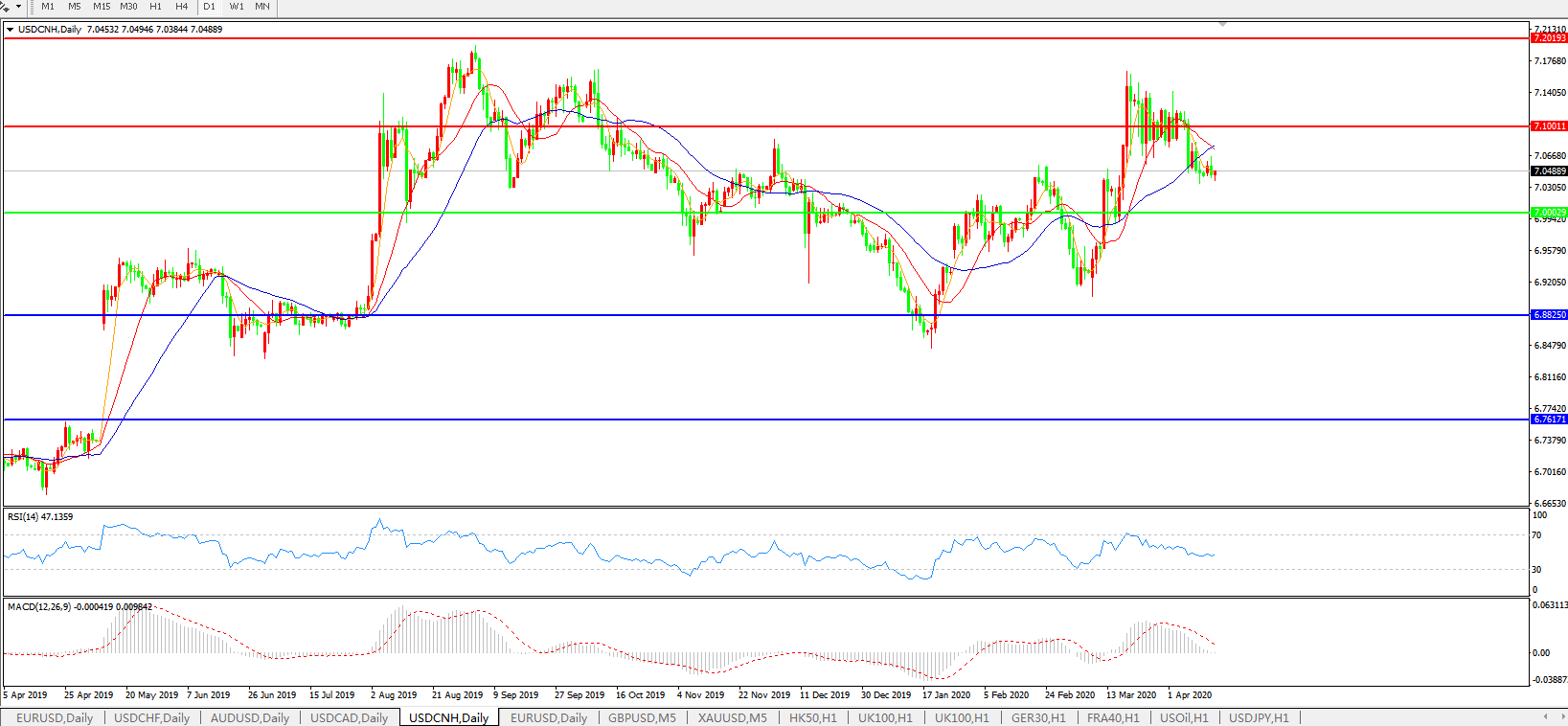 技术面简析:日图均线整体呈空头排列,汇价窄幅整理波动不大MACD0轴上方拐头下行且量能萎缩殆尽RSI维持震荡走平态势,预计短期汇价将7.0关口上方弱势运行,重点关注多空转折区域7.0关口的争夺