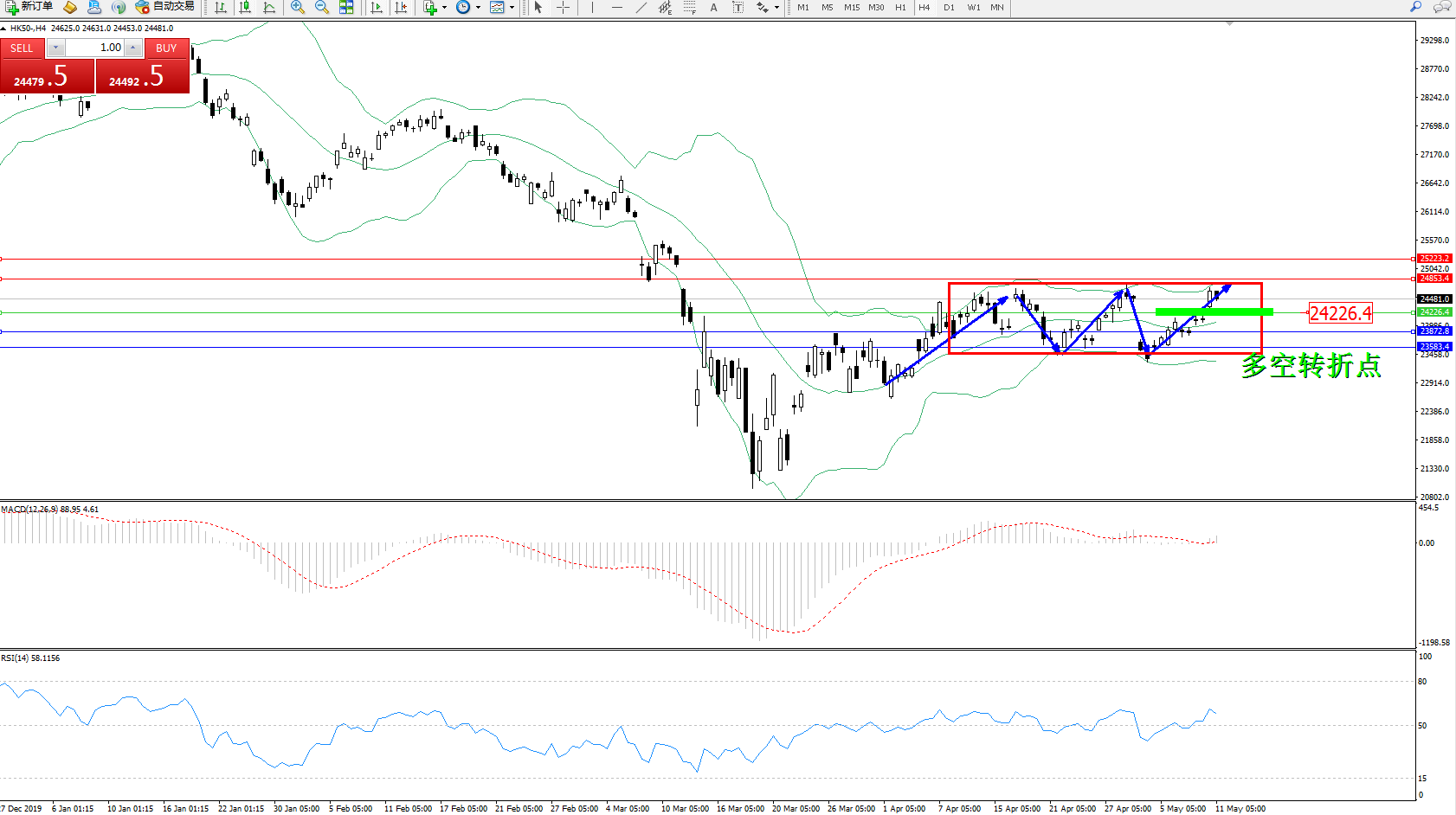 香港恒生指数5月11日(周一)收盘上涨371.89点,涨幅1.53%,报24602.06点;股主要股指上涨,国指涨1.24%报9990点,红筹指数涨0.76%报3852点。行业板块大多呈上涨行情,电商及互联网、手游股、教育股涨幅居前,慧聪集团飙涨超19%,游戏软件、医疗设备少数板块下跌。重磅蓝筹股腾讯大涨4%重上340港元,创逾两年新高。南下资金今日净卖出16.37亿港元。港股短期仍存在变数,但港股市场里的中资股估值较低,中长线价值依然较高。具体投资领域可以关注科技、医药等南向资金偏好的低估值成长股板块,银行、地产、必需消费、软件互联网等领域也受到机构关注。“五一”期间,全球股市出现波动,香港股市也未能幸免,港股此番调整主要是受海外市场的影响,与此同时,人民币近期贬值,使得港股面临资金流出与企业盈利下修的双重压力。