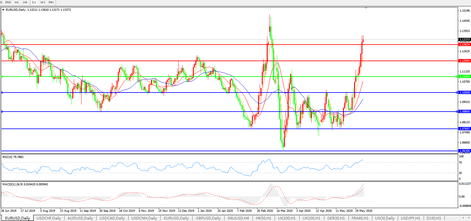 技术面简析:日图均线呈有序多头排列,汇价继续大幅飙升冲高,MACD运行于0轴上方且量能0轴上方持续放量 ,RSI进一步走升,预计短期汇价大概率将进一步走升。