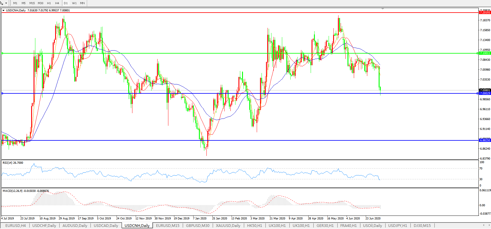 美元兑人民币USDCNH 日线图: