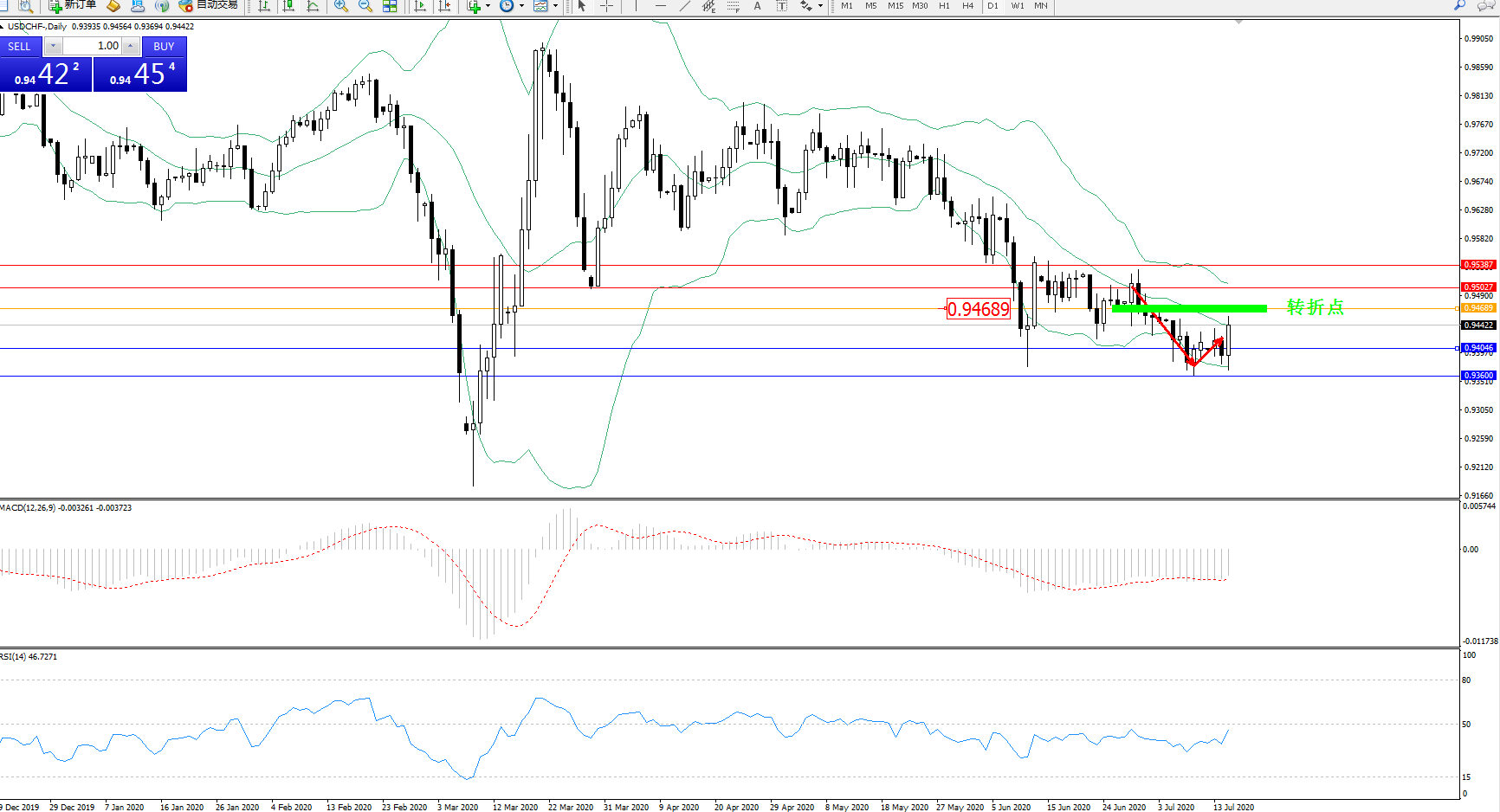 交易策略:0.94689下方看跌,目标0.940460.93600