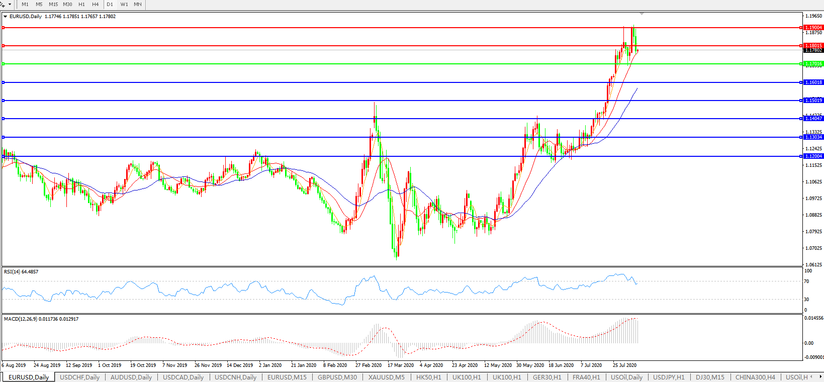 欧元兑美元EURUSD 日线图:
