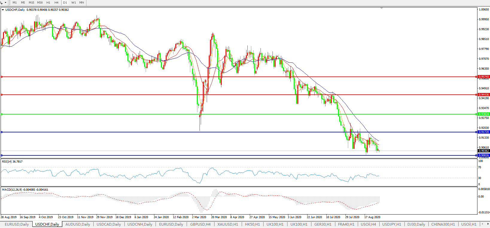 美元兑瑞郎USDCHF    日线图: