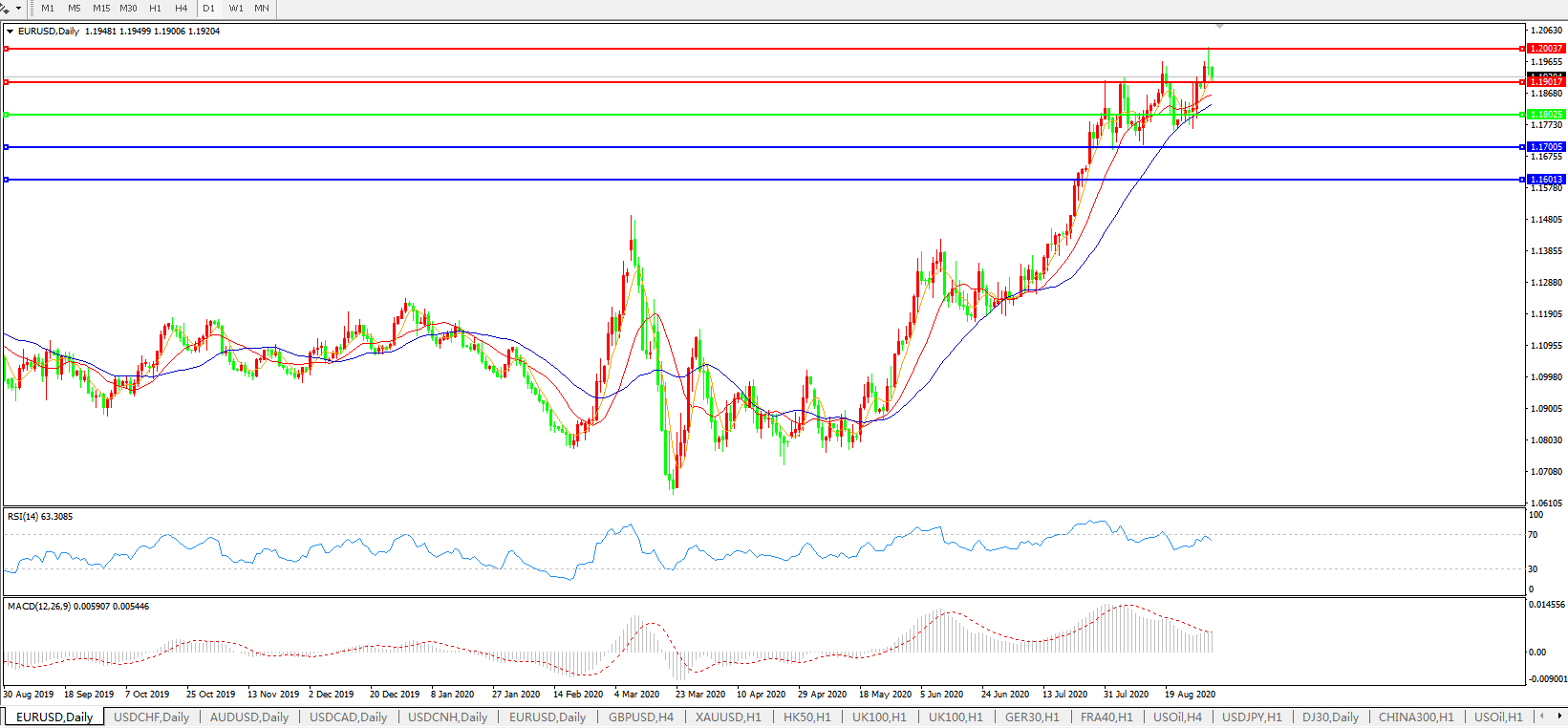 欧元兑美元EURUSD   日线图: