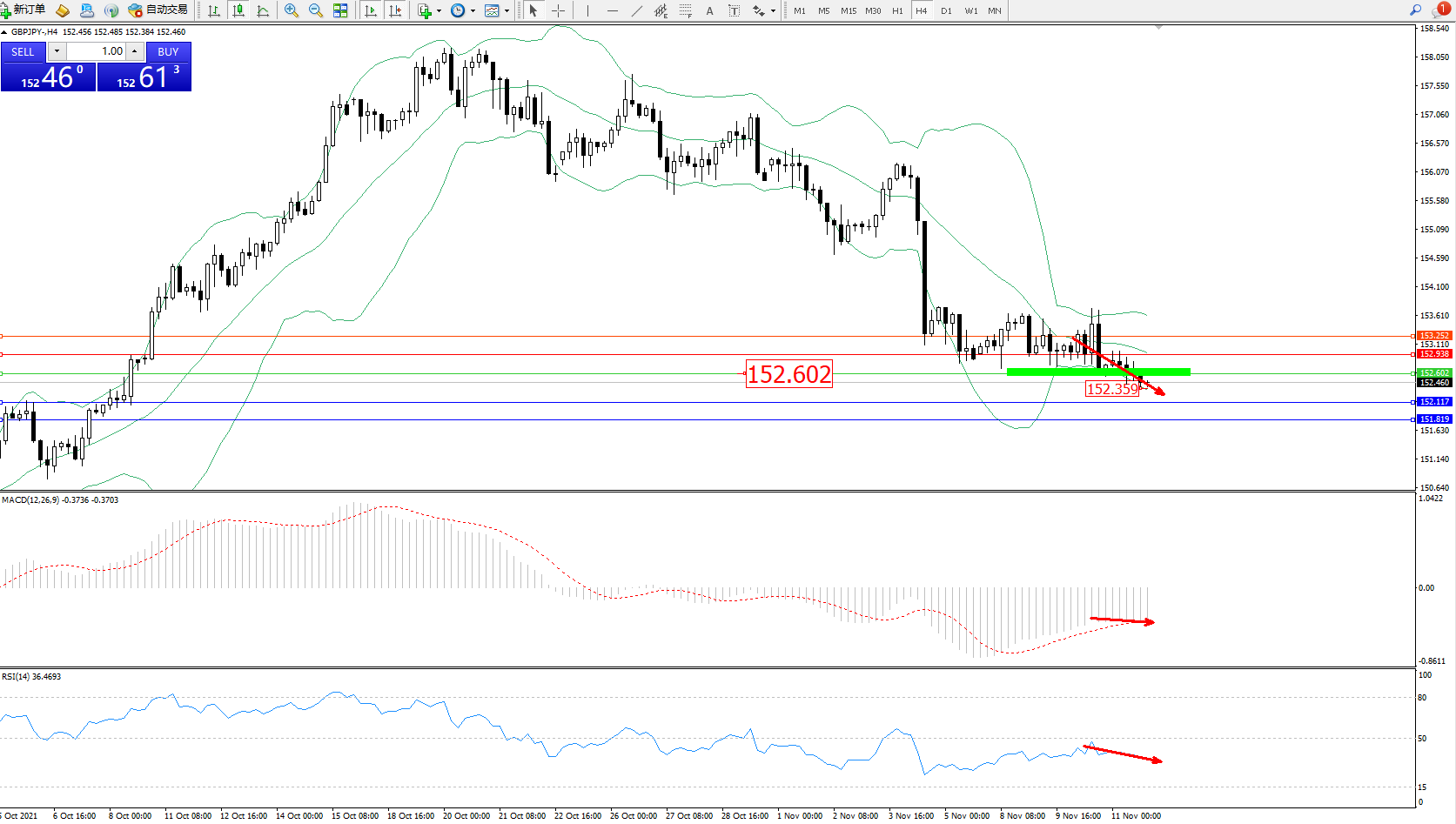 交易策略:152.602下方看跌,目标152.117、151.819