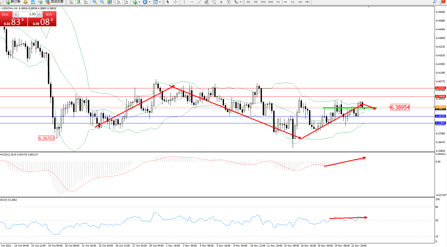 交易策略:6.38954下方看跌,目标6.38299、6.37805