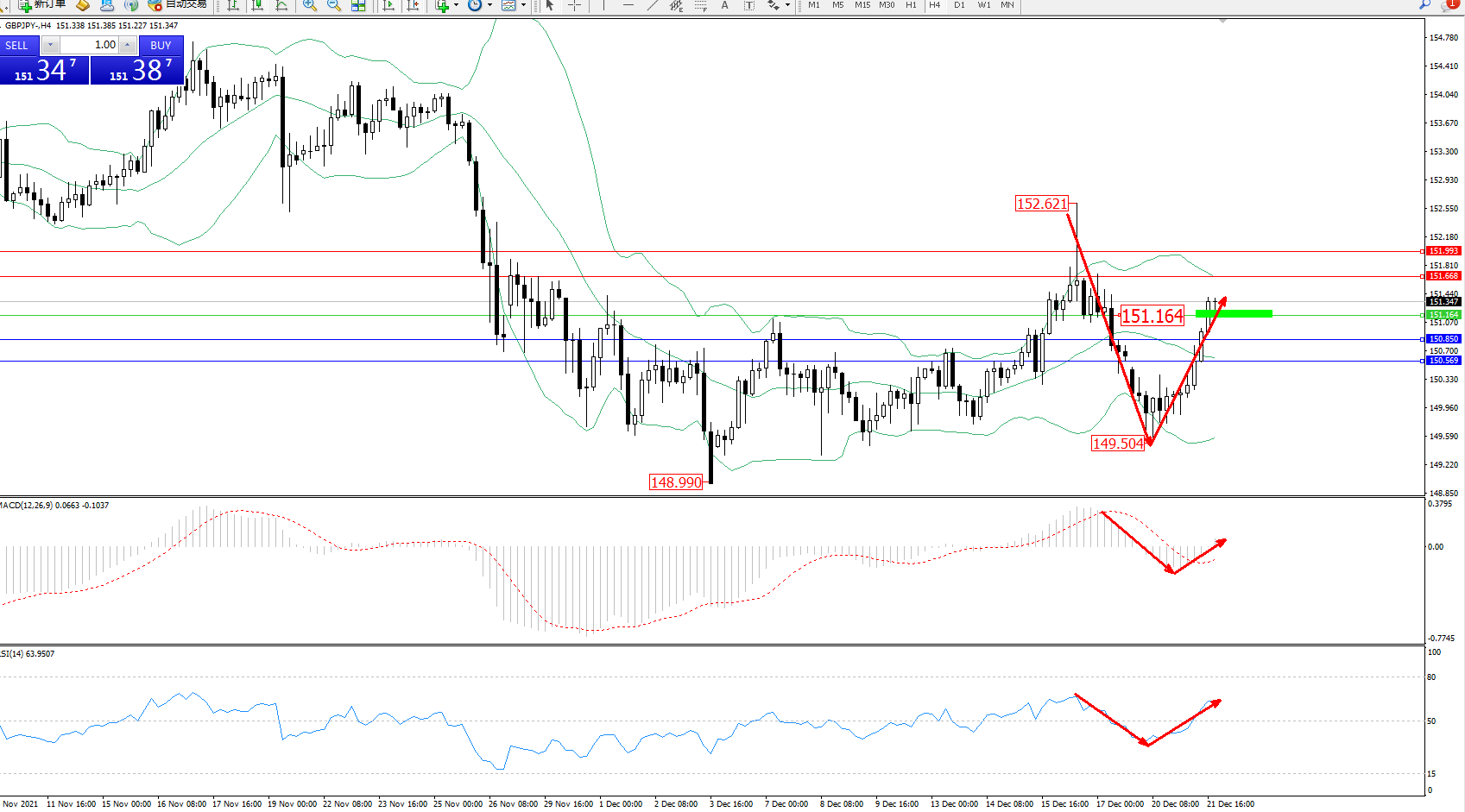 交易策略:151.164上方看涨,目标151.668、151.993