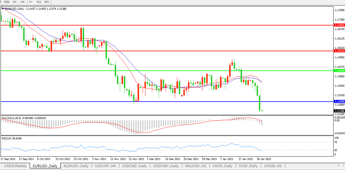欧元兑美元下跌0.95%至1.1132,为2020年6月以来的最低水平;在11月24日低点1.1186下方触发止损。瑞郎下跌,欧洲央行政策委员Rehn和Kazimir对通胀发表鸽派评论。