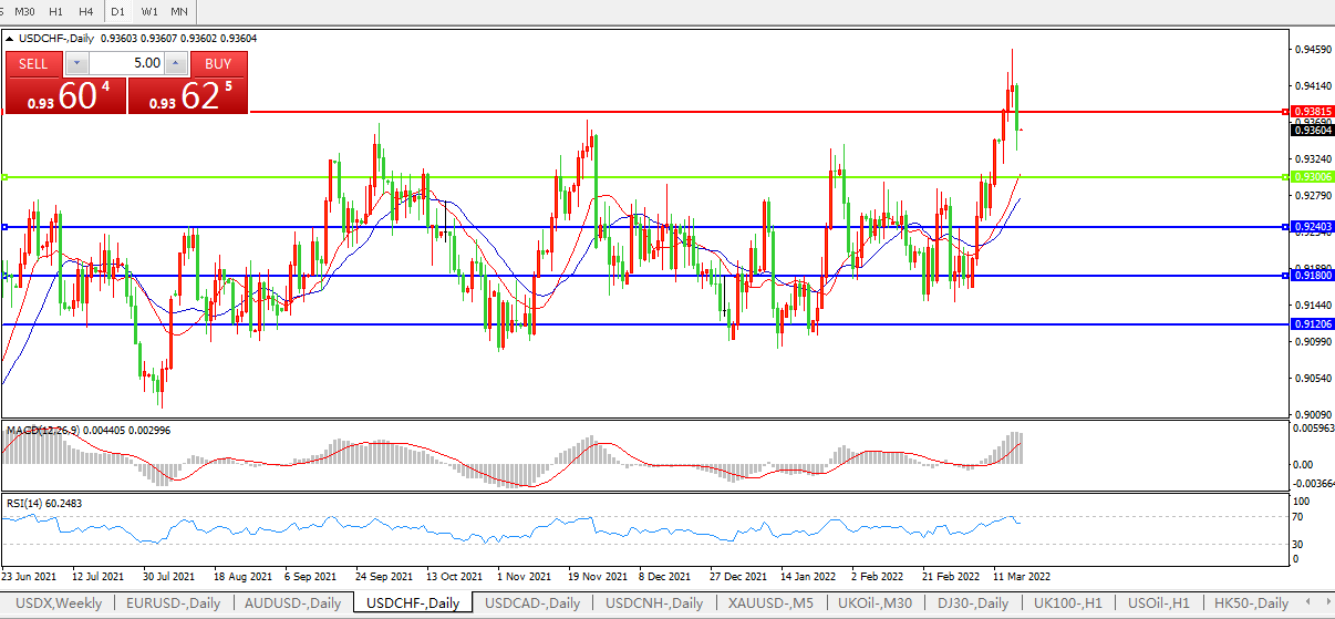 交易策略:0.9300上方看涨,目标0.9380、0.9500