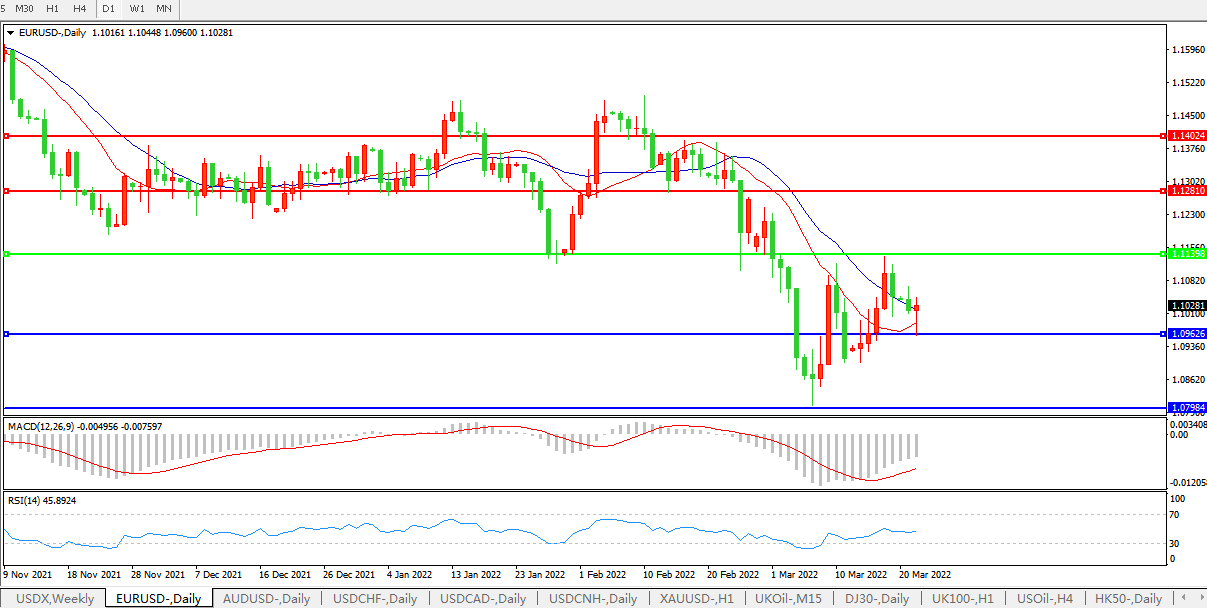 欧元兑美元涨0.11%,至1.1027,过去一个月,随着乌克兰冲突升级,导致能源价格上涨,欧元走弱。欧洲央行行长拉加德周一表示,美联储和欧洲央行的行动将不同步,因为乌克兰战争对各自经济的影响截然不同。但欧洲央行管理委员会委员暨法国央行行长维勒鲁瓦德加洛(Francois Villeroy de Galhau)周二表示,央行需要看穿能源价格的短期波动,关注潜在的通胀趋势。