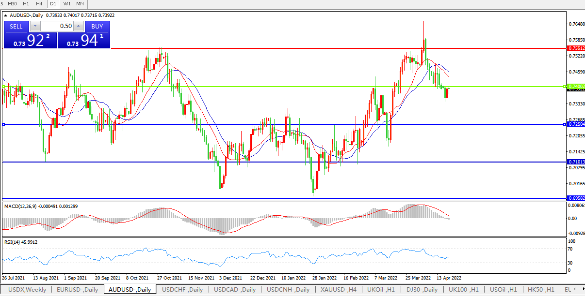 备选策略:0.7400上方看涨,目标0.7550、0.7650