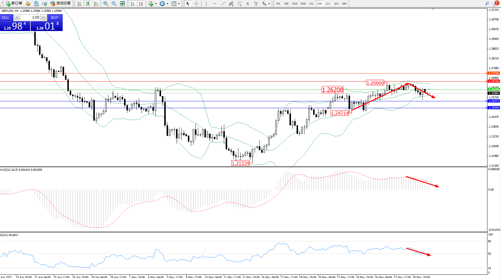 英镑美元GBPUSD ——4小时K线图显示: