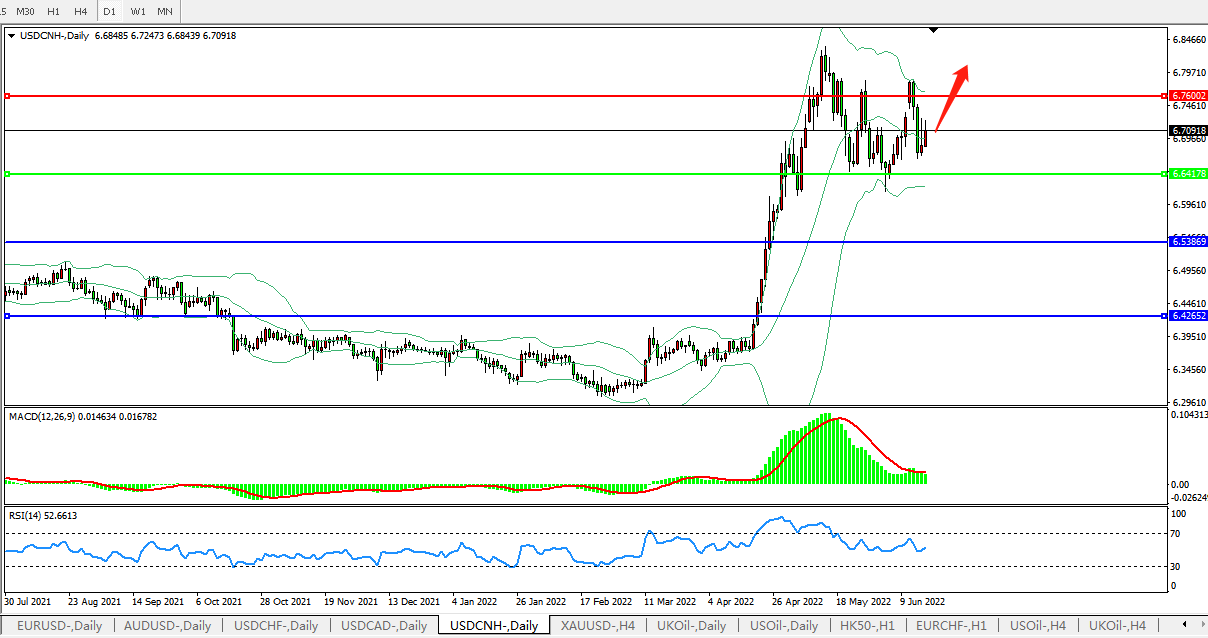 交易策略:在6.6416之上,看涨,目标价位为6.7600、6.8870。