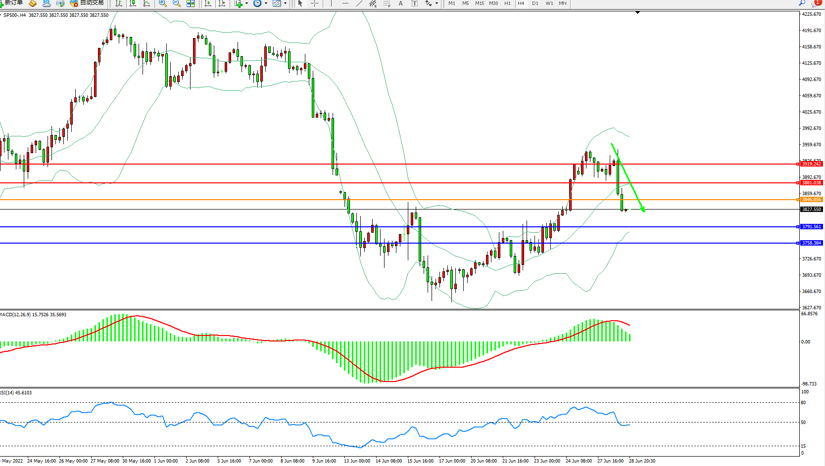 标普SP500——4小时K线图显示:
